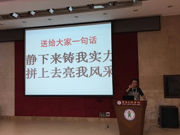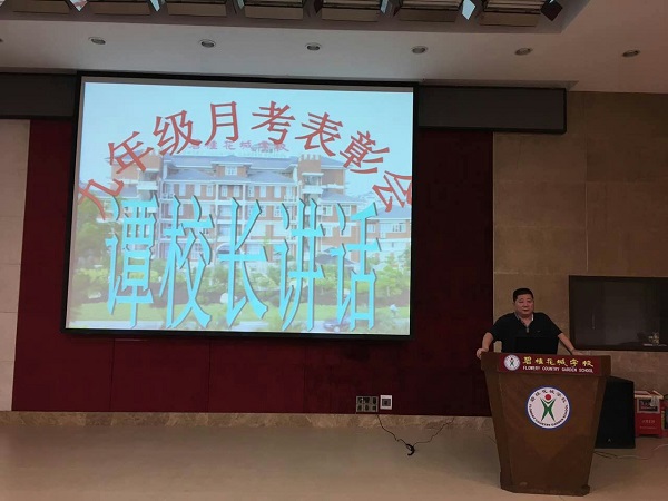颁奖仪式结束后,谭校长为本次会议做了总结发言。他说,本届九年级同学精神面貌很好,思维很活跃,通过本次月考成绩,完全相信大家具备在中考中争创佳绩的实力。他从自己读书时身边同学的刻苦学习例子说起,语重心长地勉励每一个学生都学有所成,超越自我。谭校长的讲话鼓舞人心,为九年级全体师生指明了奋斗方向,师生们掌声雷动,信心百倍。