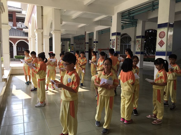 10月14日下午3:00,碧桂花城学校国际班四(1),五(1),六(1)在教学楼一楼大厅顺利开展了英语角活动。