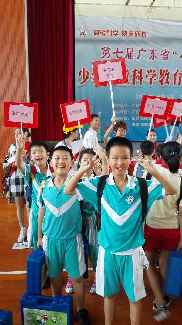 6月18日早上8:00,晴空万里,我校学子迎着朝阳,在成月明、胡德泉、董同成三位老师带领下参加了在东莞市寮步镇实验小学举行的第七届广东省“小小科学家”少年儿童科学教育体验活动决赛。