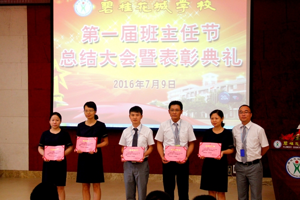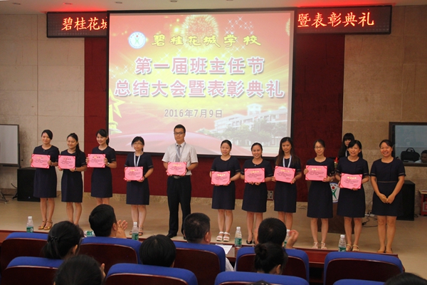 本学期,碧桂花城学校举办了首届班主任节,先后组织开展了“主题班会大赛”“感动花城十佳班主任评选”“拓展培训”等形式多样的系列活动。7月9日下午,作为首届班主任节的收官之作――班主任节总结及表彰大会在校学术报告厅隆重举行。