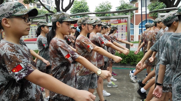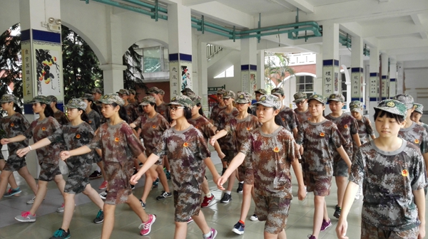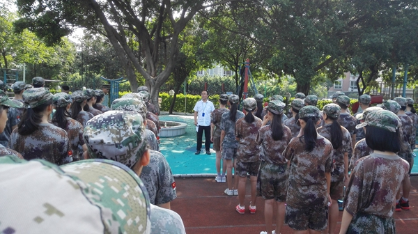 高温酷暑下,有的学生感到不适,有的甚至病倒了,在医生和老师的照料下,稍有好转,同学们便又积极坚持训练。个别同学军训前有抵触情绪,但是一看到优秀的教官和可亲的老师,很快就融进了热情似火的军训大家庭。