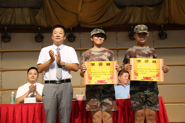 随后赵主任宣读了在本次军训中的优秀学员名单、内务标兵连、军训标兵连,校领导在嘹亮激昂的音乐声中为获奖学生和班级颁发了奖状。