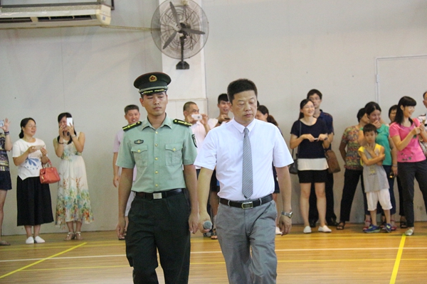 8月27日下午3点,碧桂花城学校七八级学生军训会操暨结营仪式在校综合馆举行。贺小勇校长、谭加文副校长、教学处吉正军主任、德育处赵定国主任和姚雄飞副主任,以及学生家长参加了结营仪式。结营仪式由赵定国主任主持。
