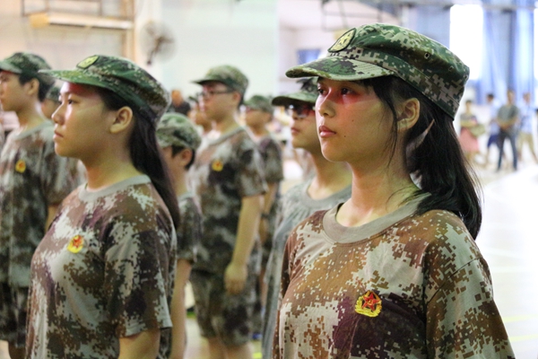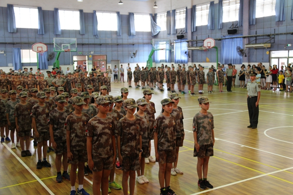 全体七八年级学生穿着统一的迷彩服,排着整齐的方队,精神饱满地进入结营仪式现场。在这里,他们将交上五天军训生活的答卷。