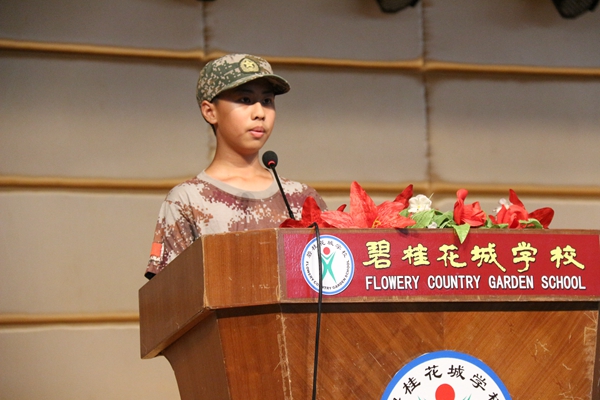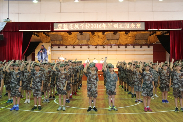 同学们,军训虽然结束了,但是,我们人生的新旅程才刚刚起步,希望你们在今后的学习、生活中,牢记军营作风,发扬吃苦精神,努力学习,顽强拼搏,用优异的成绩回报家长,回报母校,创造碧桂花城学校更加灿烂的明天!