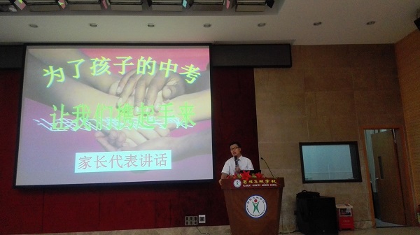 王展鹏级长介绍了中考的课程设置,特别对体育训练的注意事项做了详尽的说明,并就初三年级的作息时间安排以及初三年级本学期的工作举措作了具体布置。周天宇同学的家长代表家委会就如何配合学校工作、如何在初三一年正确与孩子相处作了发言。