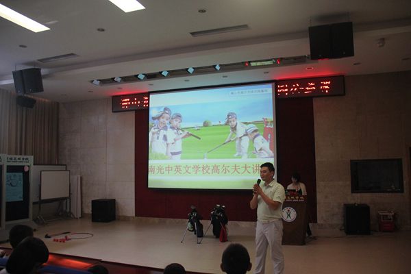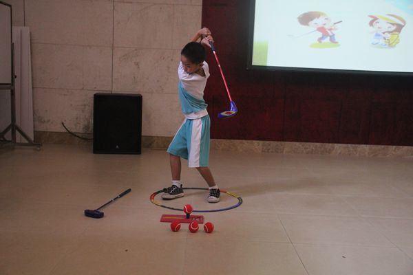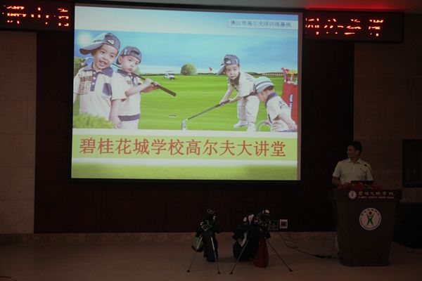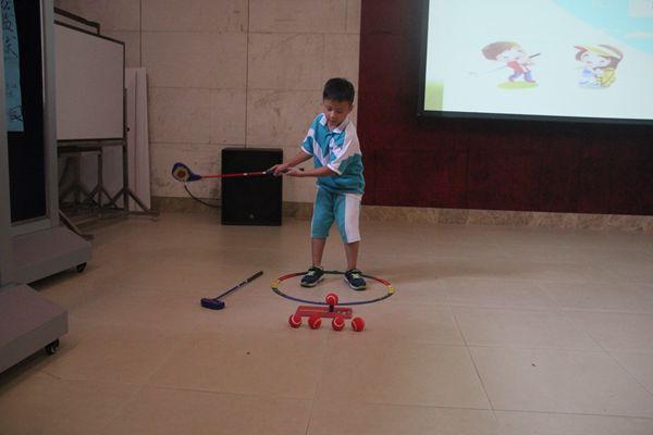 为了让孩子们对高尔夫课程有个大致了解,也为了今后课程地更好融入,2016年9月13日下午,佛山市青少年高尔夫训练基地的教练和几位老师在学校多功能报告厅为三年级孩子们做了一次别开生面的讲演。此次讲演内容丰富,涉及到高尔夫课程的方方面面。它从孩子们的兴趣引入,通过观看影片、现场提问、答对有奖的形式让学生了解高尔夫的基本知识。整个过程,孩子们兴趣盎然,积极参与,尤其是现场展示环节更是将此次讲演推向了高潮。