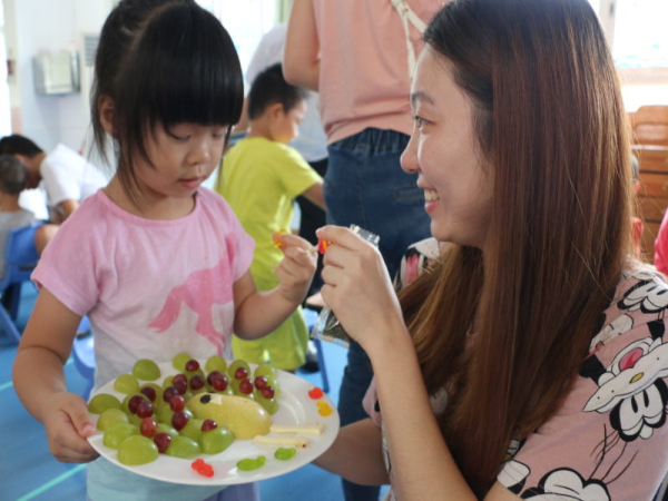 小小班的孩子虽刚刚来园只有几天,但是他们能在老师的指导下装饰节日的灯笼,并与同伴分享美食。小班的家长们与孩子一起动手,利用各种水果,充分地发挥了无限的创意和灵感,和孩子一起设计了独具风格的水果拼盘。而中大班的家长孩子们正在进行“亲子灯笼制作”活动,孩子们动手剪,家长们迫不及待地帮忙,和孩子一起制作红红的大灯笼,琳琅满目的灯笼悬挂在室内,为中秋佳节增添了一份生机、一份喜庆。国际班教室里飘出阵阵饼香,原来是孩子和家长们正在制作冰皮月饼呢,我们做的月饼可是与众不同的,有HELLO KITTY的、超级飞侠的、小熊的......