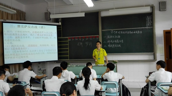 胡志文老师在七(1)班执教的是《明清抗击外国侵略的英勇斗争》一课,这是一节对学生进行爱国教育的好课。老师从现实热点――南海问题出发,通过戚继光抗倭、郑成功收复台湾和雅克萨反击战讲述了明清历史,使学生了解了事件经过,感受到中国人民反抗侵略的英勇斗争精神,正确认识了戚继光抗倭、郑成功收复台湾和雅克萨之战在中华民族反侵略斗争中的重要地位,并能依托历史事实来客观、公正地评价历史人物。整节课设计巧妙,步步推进,通过多媒体辅助教学,使学生直观、形象地掌握识别和使用历史地图的基本技能。学生回答问题积极踊跃,妙语连珠,讨论热烈,是一节精彩的展示课。