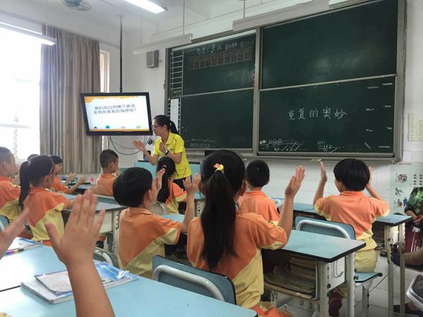 二(1)班吴红英老师给大家上了一节好玩的数学课:《“重复”的奥妙》,把数学中重复的规律用到了有趣的游戏中,学生非常喜欢,还锻炼了专注力,真好!最后,孩子们还将生活中的重复现象找出了许多许多,如一年四季的重复、钢琴键盘的重复、衣服上条纹的重复等,将数学应用到生活中,太棒了!