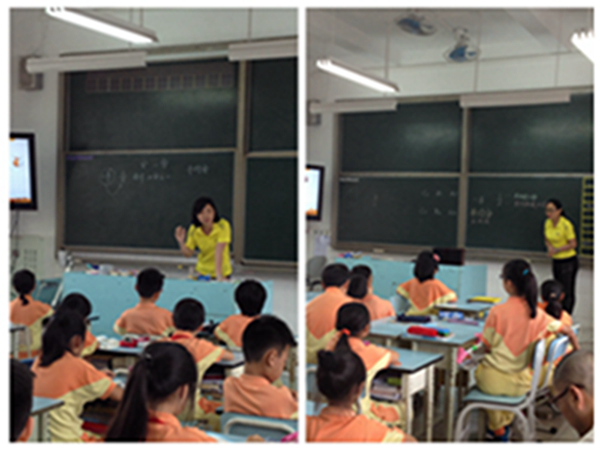余金兰和李莎莉老师执教的《分一分》一课,老师创设了孩子们感兴趣的游玩活动场景,从平均分苹果出发:即从分多个苹果到分一个“苹果”(无法得到整数),从而激起学生的认识冲突,使学生意识到原来学过的数不够用,感到学习新知的必要性,扣住了学生的心弦,进而激发了学生的求知欲望。为使学生真正理解分数是以平均分为基础这一重点,教师为学生提供了充分探索的空间与条件,引导学生从操作学具入手,使其通过操作和观察,把对知识的思考与学具的操作结合起来,促使学生在头脑中形成表象,初步建立“分数”这一概念。让学生走进图形,经历从图形表征到符号表征的过程,很自然地使学生体验、感受到分数的形成过程。老师鼓励学生发挥自己的智慧,“创造”自己喜欢的分数,这一活动不仅为学生提供了广阔的操作实践的空间,也留给了他们足够的思考与交流的时间,他们都能在动手、动口、动脑等有序活动中参与学习的全过程,促其在活动中学习、探索、发展,整个教学过程以学生为中心,每个学生的参与愿望得以满足,每个学生的思维潜能得以释放。