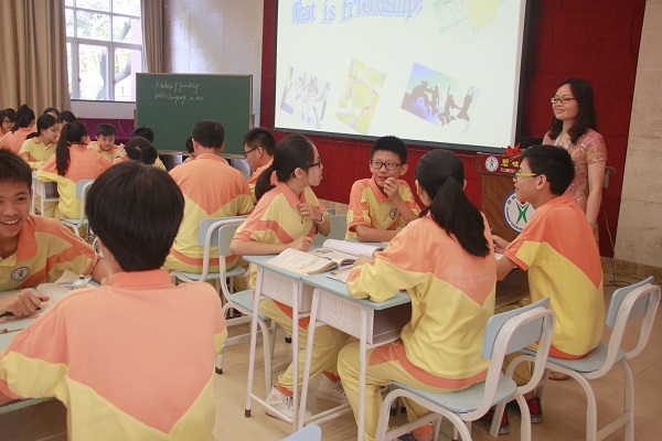 2016年5月25日上午,来自东莞市民办学校的七十余名初中英语教师到访我校交流,并观摩了一节由我校胡佩红老师主讲的英语展示课。