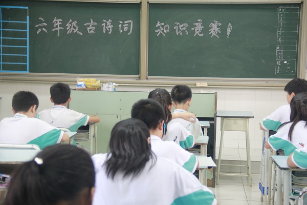为了激发孩子们学习古诗词的兴趣,5月26日下午16:20―17:00,全体六年级的孩子进行了一次古诗词知识竞赛。