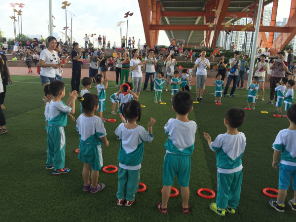 小四班的小朋友和大朋友到美丽的亚艺公园进行六一大联欢活动。宝贝们展示了一系列的英语歌曲和早操表演,和爸爸妈妈进行亲子游戏,大家都玩得不亦乐乎。