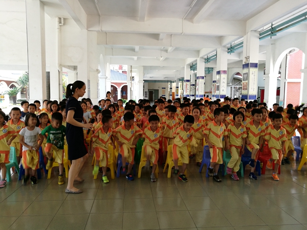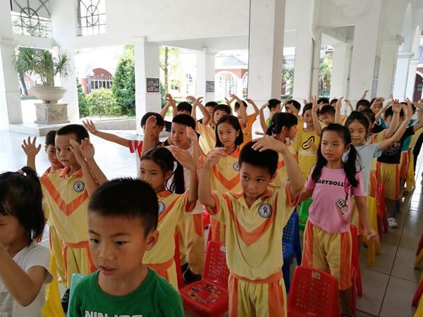 在主持谢老师的指引下,一(1)班可爱的小精灵们把一首“Mr Sun”唱得欢快又活泼。一(2)的Finger Family一点也不许逊色,孩子们翘着拇指食指中指,玩得很high!随后谢老师提问了“Which is daddy finger?”“Which is baby finger? ”这些可难不倒孩子们,问题一下子就回答出来了。紧接着就是一(3)的 “Head,shoulders,knees and toes”身体歌和一(4)“Old MacDonald had a farm”,这些灵动的 “动物们”把本次的歌曲秀推向了高潮。