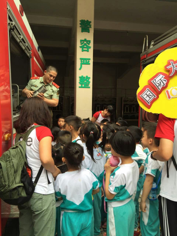 为丰富孩子们的生活经验,加强消防安全知识及逃生技能。4月28日上午,碧桂花城幼儿园国际班和双语中班的小朋友一同参观了石湾消防大队。