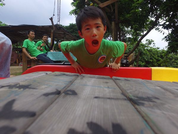 “一得他爹”农庄最具特色的就是它的小树屋,这一个个精致的小树屋开始是给一得的小宠物做小窝的,所以小树屋有的挂在树上,有的浮在水池面,有的建在平地上。当年就是给一得当玩具而造的,可拆可装,后来干脆也在树杈也建了个孩子能住的小屋了,里面安放小床,还能插电煲水,是不是有点像走进了童话故事里呢?孩子们在这两个大树屋上爬上爬下,兴奋地尖声大叫,恨不得把小屋抱回家。超强的动手能力 !超强的爱心老爸!猴塞雷啊!快来膜拜一下他的小树屋吧!