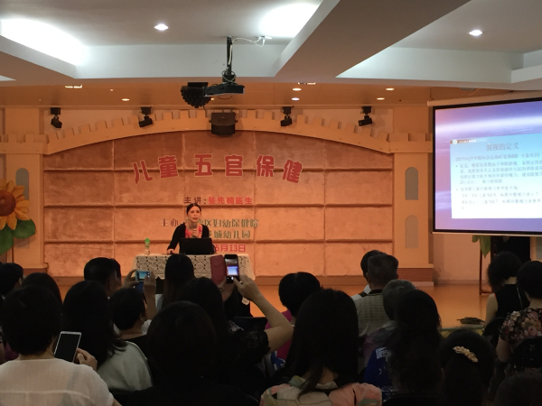为向幼儿园家长普及幼儿五官卫生保健知识,使更多的家长了解保护五官的重要性,2016年5月13日下午,顺德区妇幼保健院医师张先楠走进碧桂花城幼儿园,开展“儿童五官保健”的知识讲座。