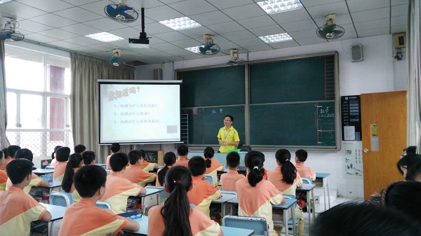 初中部成月明老师的生物课《血管》,主要运用体验式教学,先让学生通过观察不同的图片,辨别不同血管的特点,猜测不同血管的流速,接着通过“观察泥鳅胸鳍内血液的流动”这一实验,使学生把刚刚学到的知识与实践一一对照,让学生从感性上观察血管,体验血管的流动方向和速度,辨认三种血管。最后通过三个问题进行实验反馈,师生共同总结本课知识完成教学。