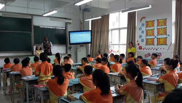 在我们四年级三班的教室里,外教Ziggy正在激情飞扬的给大家带来“Be Like , Look Like”的一节展示课。随着上课铃声响起,Mr.Zigger就以一身帅气的打扮进入课堂。用他那浑厚的男中音开始本节可的Warm up环节,把课堂气氛充分的调动了起来。接下来的各个环节都井然有序的进行着。家长们也受到了感染,时而跟随孩子一起朗读,时而被外教的幽默逗的笑声不断。课堂上,外教和学生互动很多,学生回答问题时也很积极,课堂上满满的正能量。在全英文的教学环境下,强化学生听和说的能力,让学生真正意识到,英语不仅是一个考试的学科,更是一个交流语种。