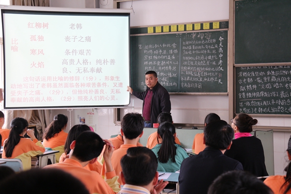 这次公开课余老师精心准备,紧扣中考小说阅读中的主要考点:重点词句的含义及其作用。余江平老师通过对往届中考小说阅读中重点词句的含义及其作用的讲解,引导学生总结解题方法及解题技巧,再让学生做他精心设计是小说《驻守荒原》练习,并当堂展示、点评了部分同学的答案。通过这节课的复习,学生答题更规范了,小说阅读能力得到明显提升。