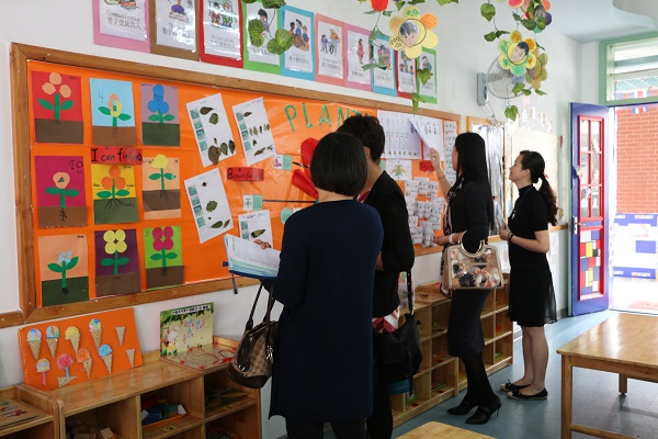 在梁园长的陪同下,督导组参观了我园的园容园貌,现场察看了我园的厨房和卫生保健室。他们向梁园长了解了我园的办学理念及教育教学情况,并深入班级与老师和孩子们进行交流。各位领导对我园的教育理念、师资配备以及环境创设给予了高度的评价。