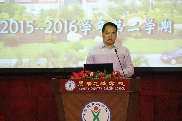 董同成老师作为教师代表发言。董老师号召全体毕业班同学要“心中充满美好的向往”,“再埋头苦学两个月,而后自信地走进中考考场,以梦为马,以笔为枪,去搏击人生的第一个战场!”他的讲话震撼着同学们的心灵。