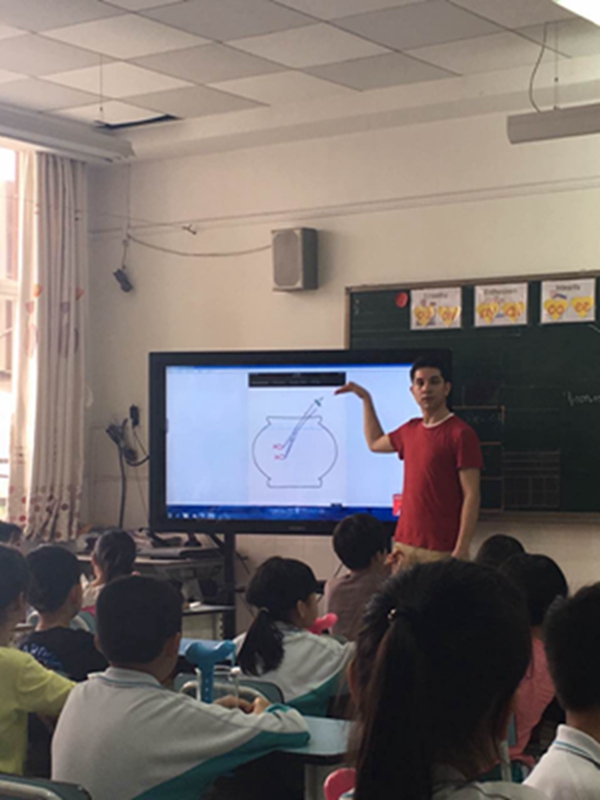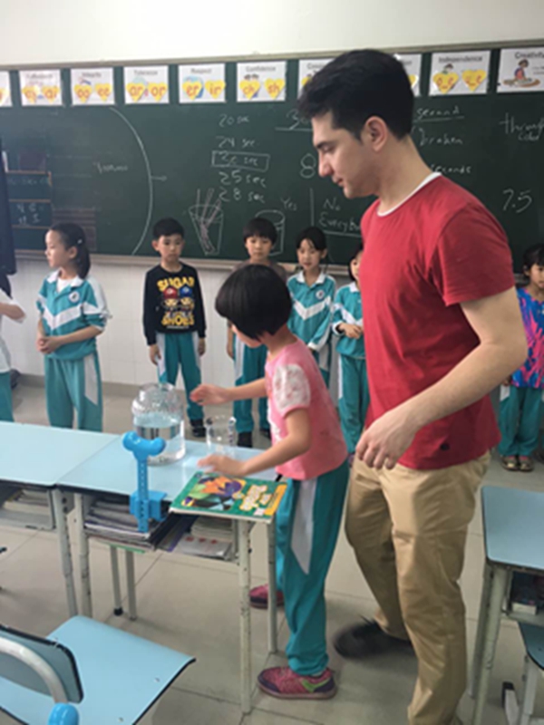 4月7日下午外教老师Mr. Bryan和Ms. Cathy在二(1)班共同教授了一节精彩的以光的折射为主题的UOI探究课。课堂上,老师们通过不同介质的液体对光线传播方向的改变的实验,深入浅出的向孩子们展示了光的折射原理。