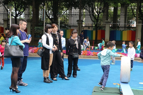 9点30分,碧桂花城幼儿园里响起阳光体育的音乐,孩子们兴奋不已,大家来到自己喜欢的运动项目处参加活动。此时,各位专家与老师陆续来到我园,一进幼儿园便被这热情澎湃的氛围所感染。一个个有趣的阳光体育项目让参观老师们忍不住驻足,仔细观察,认真记录。