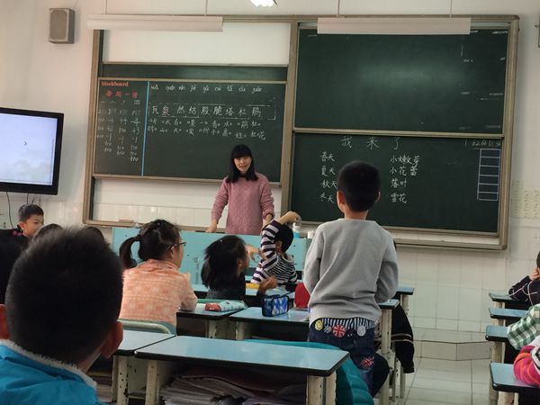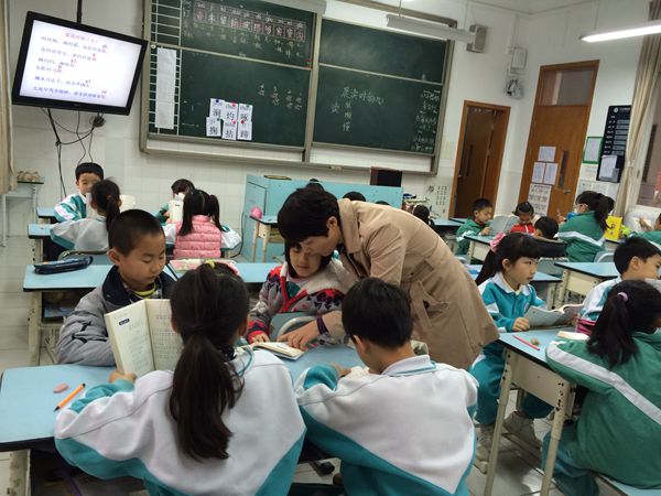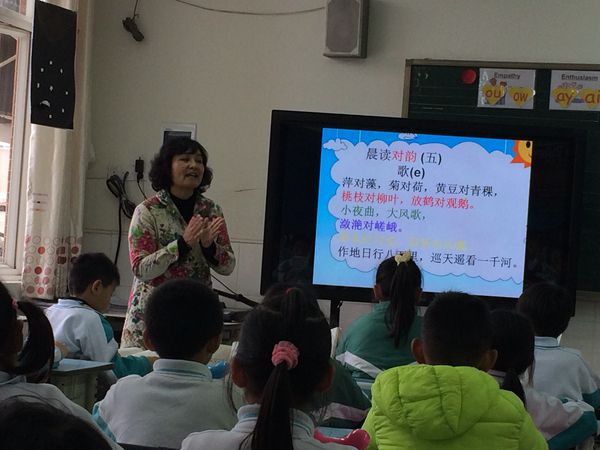 吴天桃老师、黄洪老师、焦肃英老师则先后围绕着本学期《日有所诵》的重点“晨读对韵”,上了一节风格各异的研讨课。老师们紧紧抓住晨读对韵对对子的特点,或配以精美的图案,或伴以优美的范读,或和着明朗的节奏,或给予深入浅出地讲解,让原本抽象、少见的对子内容变得浅显易懂。课堂上,孩子们时而轻声自读,时而激情吟诵;时而同桌对诵,时而小组赛读。孩子们在一次次的诵读中感悟着对子的节奏感和韵律美。同样的内容,三个老师上出了不同的韵味,上出了各自对文本的理解和感悟,也彰显了她们各自的教学个性。