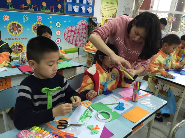 阳春三月,百花盛开, 3月18日下午,一(3)班代理教师――何思凝妈妈为孩子们上了一堂精彩的手工制作课。瞧,学生们听得多认真,他们用心地画着、贴着,一幅幅漂亮的手工作品展示在你我面前,看着一只只可爱的燕子,一朵朵五颜六色的鲜花……大家不禁赞叹道:“孩子们的想象力真是太丰富了!”
