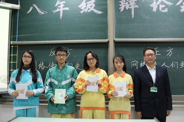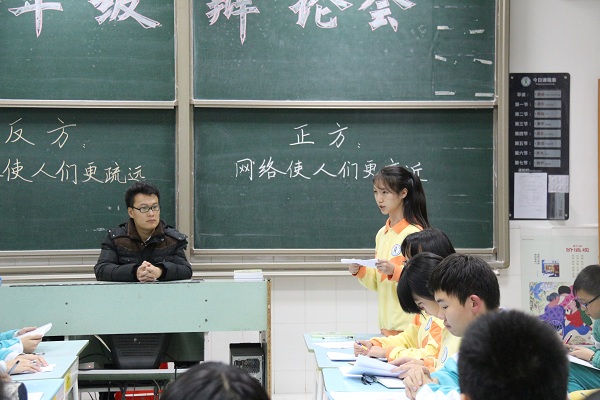辩论赛围绕“网络使人们更亲近”还是“网络使人们更疏远”展开激烈论战。经过七年级时的多次大赛,以及本学期已经举行过的班级辩论赛,选手们已经积累了丰富的赛场经验,同时对辩题的把握自然是更加准确。双方选手们显然是经过了精心准备有备而来,赛程伊始双方你来我往已是十分激烈。各小组辩手思维敏捷,正反双方你来我往,唇枪舌战,现场高潮迭起、掌声不断,气氛异常紧张。