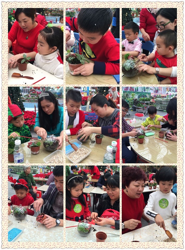 早上9点钟,爸爸妈妈和宝贝们身着圣诞服装,陆续来到花卉世界旺林园艺活动现场。首先宝贝们在园艺师姐姐的带领下认识了花场里的各种植物,与植物来了一次近距离的“约会”!
