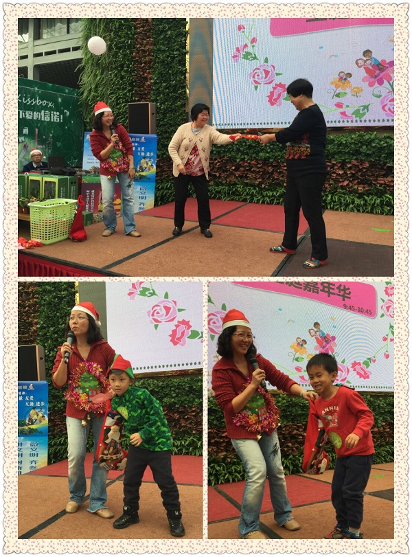 接着宝贝们来到舞台中间,伴随着美妙的音乐,大家齐唱The Twelve Day of Christmas,齐跳《低碳贝贝》,载歌载舞将活动推向高潮。此时外籍教师Ms Jane 拿出提前准备的Christmas Crackers并邀请家长们参与游戏,在宝贝们的欢呼下,游戏开始了。