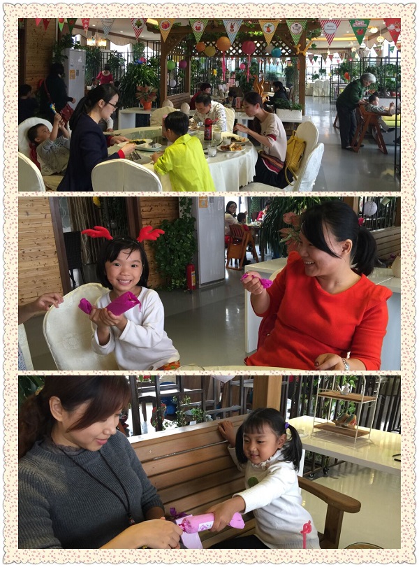 不知不觉到了午饭时间,我们移步餐厅共享自助午餐,餐后宝贝们收到了圣诞礼物和自制的Christmas Cracker,与家人分享着自己对爸爸妈妈、老师和同伴们的祝福。