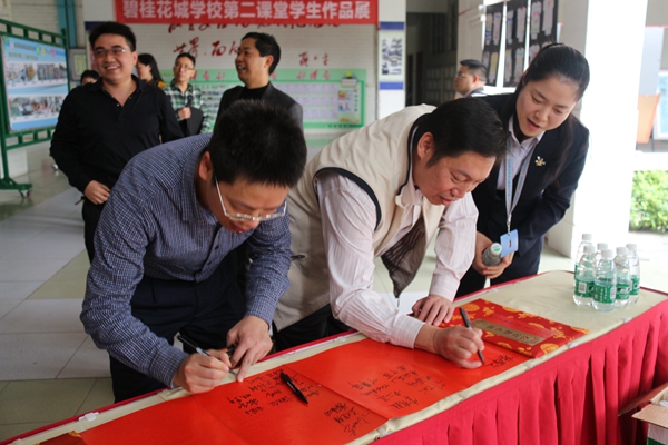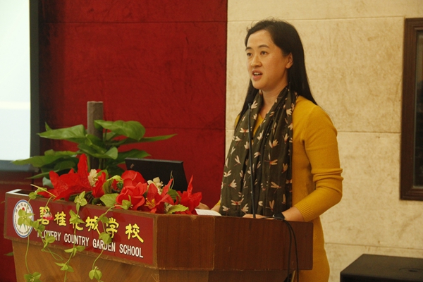 作为东道主,贺校长先向各位嘉宾和校长介绍了碧桂花城学校的概况、办学定位,然后从四个方面介绍了学校特色课程的创设:1、开齐课程,开足课时;2、“浸泡式”英语;3、创新发明;4、书香校园。近年来,碧桂花城学校在贺校长的带领下,先后打造了一系列具有一定影响力的特色课程,这些课程从学校实际出发,结合学校特色,教学内容兼顾科学性、全面性和系统性,使学生身心得到了全方位的发展,并总结出“特色项目――学校特色――特色学校”的三步建设策略。