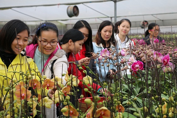 冬日的阳光依旧暖洋洋,我们首先来到了兰花园,随着拥挤的人群,走进了养兰花的大篷。兰花园的老板娘给我们一一介绍了不同的兰花品种,详细讲解了各类兰花的特性与种植方法。我们一边仔细地观赏着、聆听着。