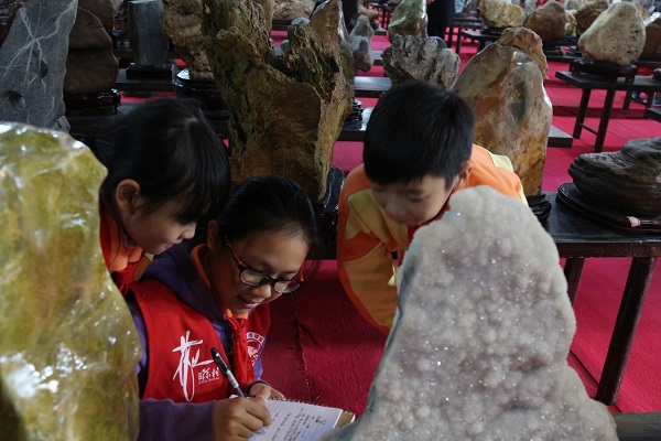 参加挂牌仪式的有镇教育局局长暨耀文、陈宇平、徐慧玲、李华,各中小学校长、教师,小记者共计一百多人。挂牌仪式由徐慧玲女士主持,暨耀文局长和馆主李满先生一起掀起红布,华夏奇石馆社会实践基地正式落成。作为小学生的我们,又有了一个很好的实践拓展的基地。在这里,可以更好地了解我们祖国的石文化。