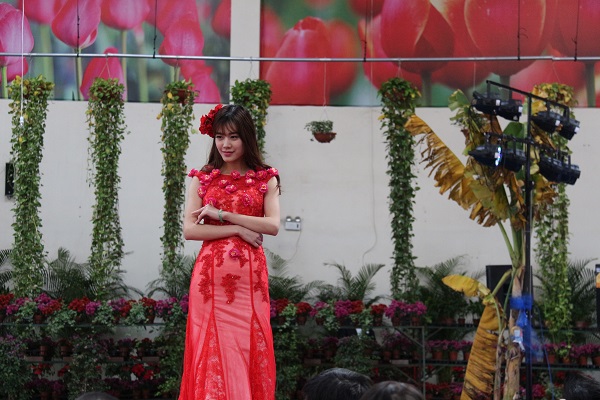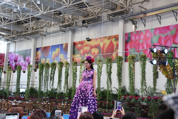 我们一直往前走,走到各个展厅前,都有工作人员向我们介绍展厅特点。伴随音乐望去,只见T台上,一些吸人眼球、魅力无限的模特,他们身穿鲜花走秀,宛如仙女下凡。据工作人员介绍,主办方将成立专业模特、专业设计师、专业指导老师组成花卉表演艺术团。专业模特们将穿着鲜花做的衣服在“花宴自助火锅”活动现场走秀,游客们可以在花海里一边品尝自助火锅,一边看花卉模特表演,那是多么幸福的时刻啊。
