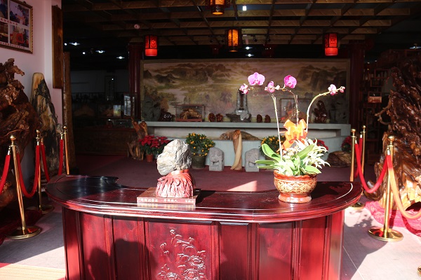接下来在馆主李满先生的陪同下,我们参观了展馆。李满先生是广东省盆协雅石根艺专业委员会副主任、广东省侨联顾问。李先生第一次以讲解员身份带我们参观展馆。从李先生的介绍中我们知道了:此馆是我国最大的私营奇石馆,面积4000多平方米,汇集了我国各地区的奇石珍品。藏石数万件,并免费向游客开放。奇石馆吸引了众多的中外石头爱好者,产生了很好的社会效益,有力地促进了中西石文化的交流和发展。李先生说:“让更多的人来了解石文化,从而推动佛山赏识文化艺术的发展,不断提升城市和市民的艺术品位。”