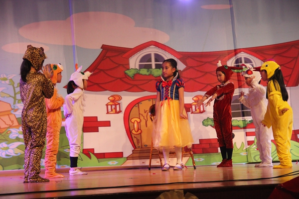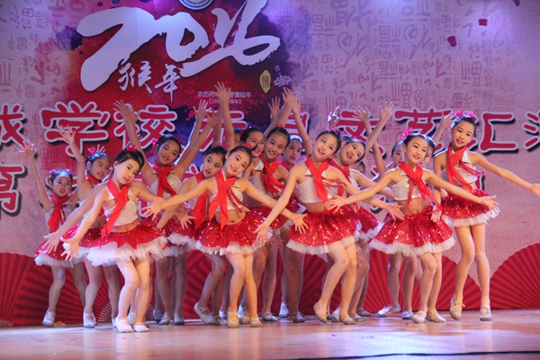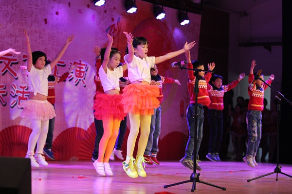 汇演14个节目异彩纷呈。丰富的节目类型,新颖的节目编排,高标准的节目质量,征服了每一位现场的观众。最先上场的合唱队员用最美和声演绎了一曲令人震撼的天籁之音;第二课堂选送的舞蹈《麦田童话》既婀娜多姿,充满青春动感,又轻松诙谐,洋溢童趣;英语剧《Snow White》里,无论是漂亮优雅的公主,还是俏皮可爱的小矮人,都是舞台上最璀璨的明星;国际班的英语歌曲联唱,让观众感受到了花城学子骄人的英语水平,更彰显出我校国际教育的成功;吉他、尤克里里合奏《幻化成风》为大家带来了不一样的曲风,留给观众别样的味道;舞蹈《时刻准备着》,一群祖国的小花朵正朝气蓬勃,迎接未来的召唤;丝丝笛声传千里,阵阵芦笙响万年,葫芦丝与竖笛合奏《时间都去哪儿了》用最富感染力的声音,带大家重温了花城建校十二年的辉煌历史;街舞 《Free style》激情四射,动感十足,给观众带来了视觉冲击和听觉震撼;初中部小组唱《青苹果乐园》展示了中学生积极上进的精神风貌;情景剧《特别的爱给特别的你》演绎的是一曲父亲的赞歌,也是儿女心中款款深情的最好表达;歌曲串烧,四种不同曲风的演唱再次令现场沸腾。情景剧花城版《中国好声音》紧跟时代潮流,既有动听的音乐,又有出色的模仿,让现场笑声不断,掌声不断;歌曲《青春修炼手册》,悠扬的旋律、深情的演唱使观众享受了一场音乐盛宴;作为压轴好戏出场的则是曾获2015年陈村镇“美在陈村”少年儿童艺术节文艺汇演一等奖、2015年顺德区中小学生文艺汇演一等奖、受邀参加顺德区优秀节目巡演的舞蹈《鱼儿》,这群水中的小精灵苗条灵动的身影、变幻多样的舞姿、娴熟高难的技巧,舞出了对生活的热爱,让整个舞台熠熠生辉……最后,在一片喜庆热闹的礼花声和一浪高过一浪的掌声中,主持人宣布演出结束,小演员们有序上台合影留念,用镜头定格最欢乐的瞬间。