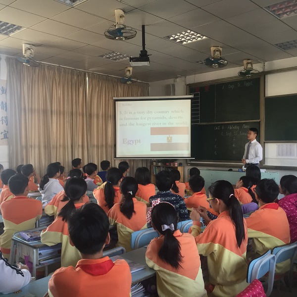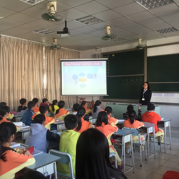 冯旭红老师与六(2)全体同学为家长和来宾们展示了一节题为《Holiday Plans》的阅读拓展课。本节课老师首先采取小组比赛的形式,引导学生对已经学过的Canada和Egypt这两个国家风土人情、地理位置、天气状况等进行梳理复习。此环节展现了孩子们乐于在比拼中交流和学习。紧接着冯老师通过两个孩子在微信上聊他们假期的旅游计划,自然而然的引出Australia,对于新文本的处理,主要采取的是思维导图和任务型教学:听了之后回答出来,读了之后写下来,写了之后说出来。就这样孩子们在老师由易到难,层层递进的引导下,一个去澳大利亚旅行的计划图清晰地呈现出来了。老师的步步引领,学生们的乐于表达,赢得了家长们的声声赞誉。