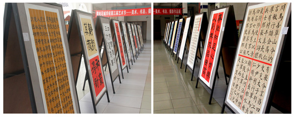 碧桂花城学校充分结合学校的实际情况,以学生的求知欲望和兴趣为出发点,为师生提供了无限发展与创造的空间,开展了丰富多彩的第二课堂兴趣活动课程,本次学生书法作品展荟萃了我校张峰老师快乐书法班第二课堂同学们的大量优秀作品,有毛笔书法与硬笔书法。是一场规模大、品位高的展览。有的学书三月、有的学书三年。乙未岁末,推出学员稚雅之作。