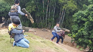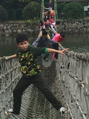 接下来就是CS激光枪野战,家长和孩子们全副武装,在激烈刺激的战斗中体验了一把军人叱咤疆场的感觉。下一个项目是水上乐园,孩子们用毅力和勇气挑战并超越了自己,跨越了一座有一座令人心惊胆战的水上绳索桥。