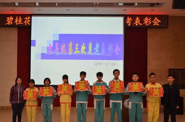 九年级召开月考表彰会