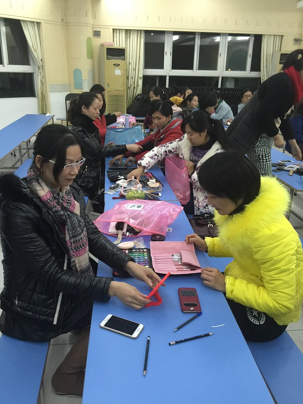 老师们跟着培训师的讲解开始为自己化妆,很多老师都表示这是第一次尝试,免不了出现心慌手抖的现象。培训师在老师们实践的过程中耐心指导,两个小时的培训一眨眼就过去了,老师们意犹未尽,都期待着下一次的培训。