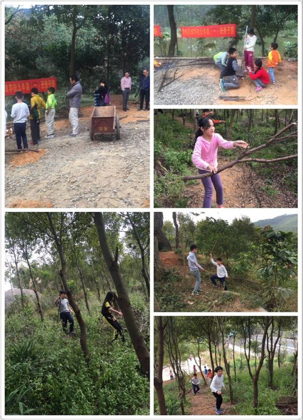 为了准备下午制作土窑鸡的柴火,同学们爬上山头拾柴火。大家各自分工,有的去拾柴,有的同学排起了长长的队伍,进行接力。不一会儿,地上了就已经堆起了高高的柴火堆。