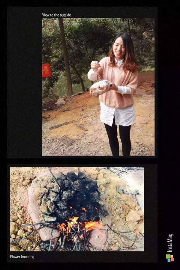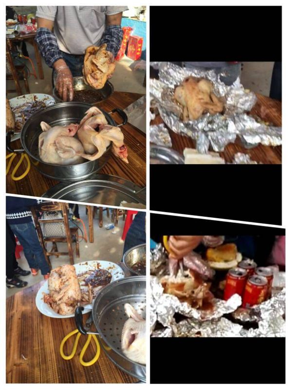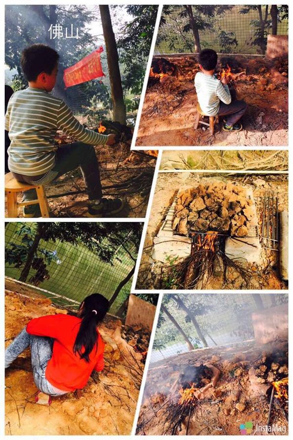 捡完柴火,大家都有点小小的疲惫,前往农庄做稍许休息,并品尝正宗农家土菜,精力旺盛的孩子们都聚在厨房里,看看蔬菜,又去看看鸡鸭,一会都不愿停下来。用完午餐下午是参观土窑鸡的制作流程。农庄的工作人员向我们展示原汁原味的手工制作流程。同学们先观看老师傅怎么做,再自己动手尝试。我们挖了大土坑,燃起了熊熊烈火,然后用锡纸把鸡包好,放入火坑埋好。等了一个多小时最后大家吃到了自己做的土窑鸡。