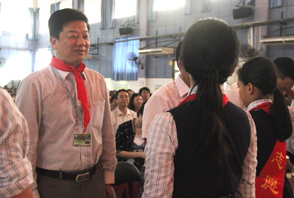 少先队员代表为校领导佩戴红领巾