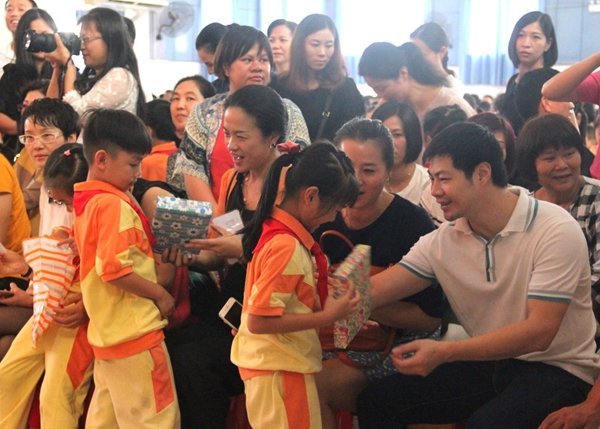 下午2点半,在校舞蹈队的开场舞《时刻准备着》中拉开了入队仪式的序幕。接着在充满活力的音乐声中孩子们精神饱满地入场。在大队辅导员宣布了新生入队名单后,五年级的大哥哥大姐姐为他们戴上了鲜艳的红领巾,当一条条鲜艳的红领巾在新队员胸前飘起时,新队员的脸上都洋溢着激动与自豪。新队员在队旗下庄严宣誓后,新队员代表石明峻同学发言,用稚嫩的话语表决心。全体新队员走下舞台拥抱父母,献上感恩卡,家长们感动得热泪盈眶,家长代表还上台表达了对学校和老师的感谢之情。